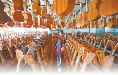 一个贵州东北边缘县城生产的吉他,如何打开国际市场?“国际性乐器展会是我们吉他企业‘走出去’的一大平台。”代祥飞说。早期,为了鼓励吉他企业参加展会,正安对企业的展位费、人员出行费按比例进行补贴。尝到甜头后,不少企业每年都会主动参展,“展会规模大,参展厂商多,我们能接触到更广阔的市场。”韦林飞说。
